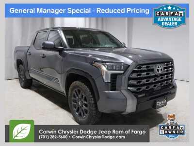 Description: SPRINGING INTO APRIL AT CORWIN CHRYSLER DODGE JEEP RAM OF FARGO!! WE HAVE SAVINGS ON ALL OF OUR PRE-OWNED VEHICLES AVAILABLE!! WE HAVE ONE OF THE LARGEST SELECTIONS OF INVENTORIES IN OUR AREA AT ONE SINGLE LOCATION !! Priced below KBB Fair Purchase Price! Magnetic Gray Metallic 2025 Toyota Tundra Platinum 4D CrewMax 4WD 3.4L V6 CARFAX One-Owner.Thi...Features:- - Navigation System