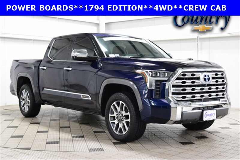 Description: 2023 Toyota Tundra Hybrid 1794 Edition Blueprint 4WD 3.4L V6 10-Speed Automatic3.4L V6, Apple CarPlay/Android Auto, Heated front seats, Illuminated entry, Power moonroof, Remote keyless entry, Tilt steering wheel, Ventilated front seats.CHECK US OUT!!!...BIG CITY SELECTION & SAVINGS WITH SMALL TOWN HOSPITALITY...Features:- - Navigation System